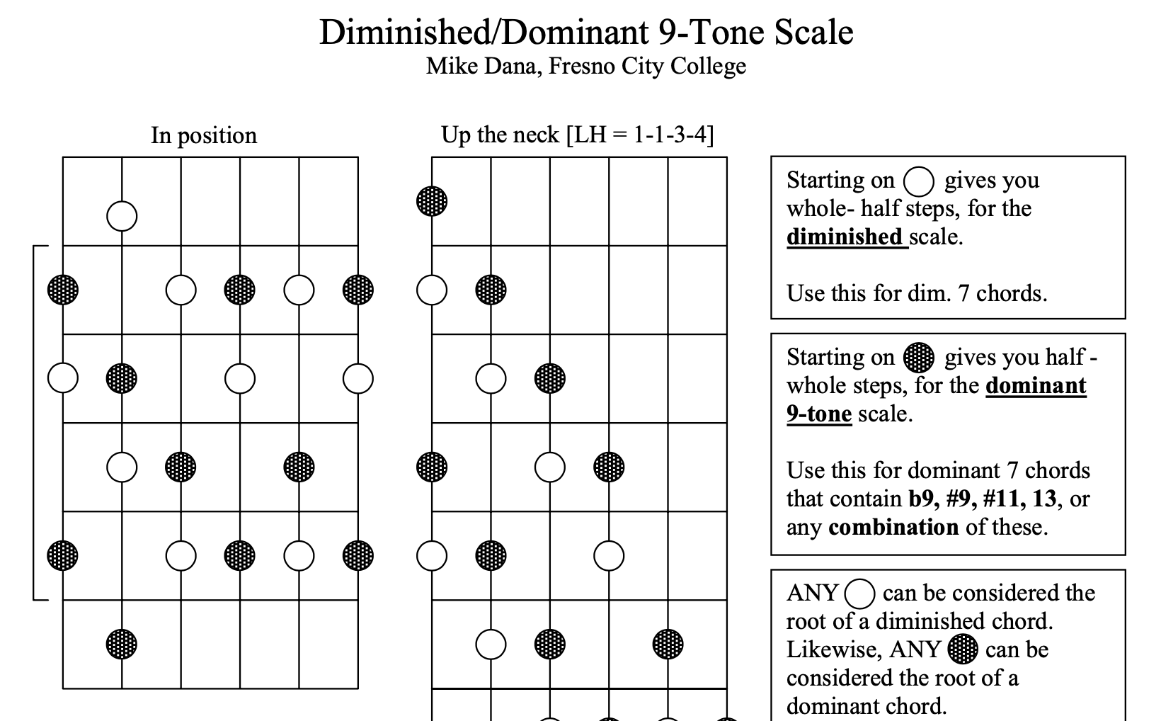 I was going to call this seminar “Diminished Expectations:, but then I thought “ehh, maybe a bad idea.” 🙂 Diminished scales, when used well, add a level of complexity and freshness to your solos. It’s like the “level up” from altered, lydian dominant, etc. This seminar covers how to apply the diminished scales over diminished chords (no surprise there) but also the tonic diminished, But it;s the half0whole diminished (aka the dominant 9-tone) scale that really shines.